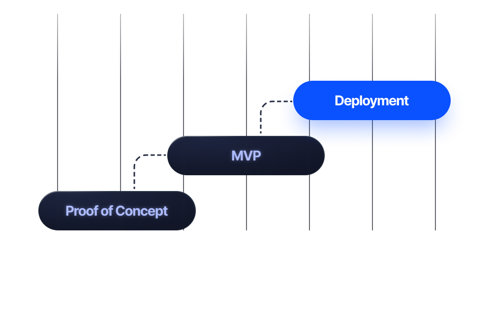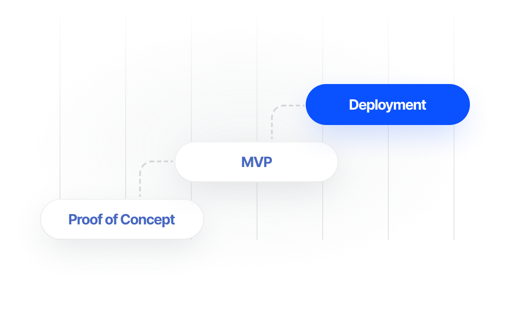 See value at every step. We start with a fast, focused Proof of Concept to validate ROI, then move to MVP, and finally full deployment. You get real results and clear data before making major commitments—no betting big on promises.